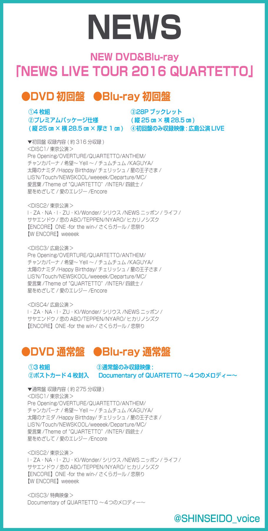 新星堂 Auf Twitter News 12 14に今年6月に行われた16年ツアー千秋楽の東京ドーム公演を収録したdvd Blu Ray News Live Tour 16 Quartetto 発売